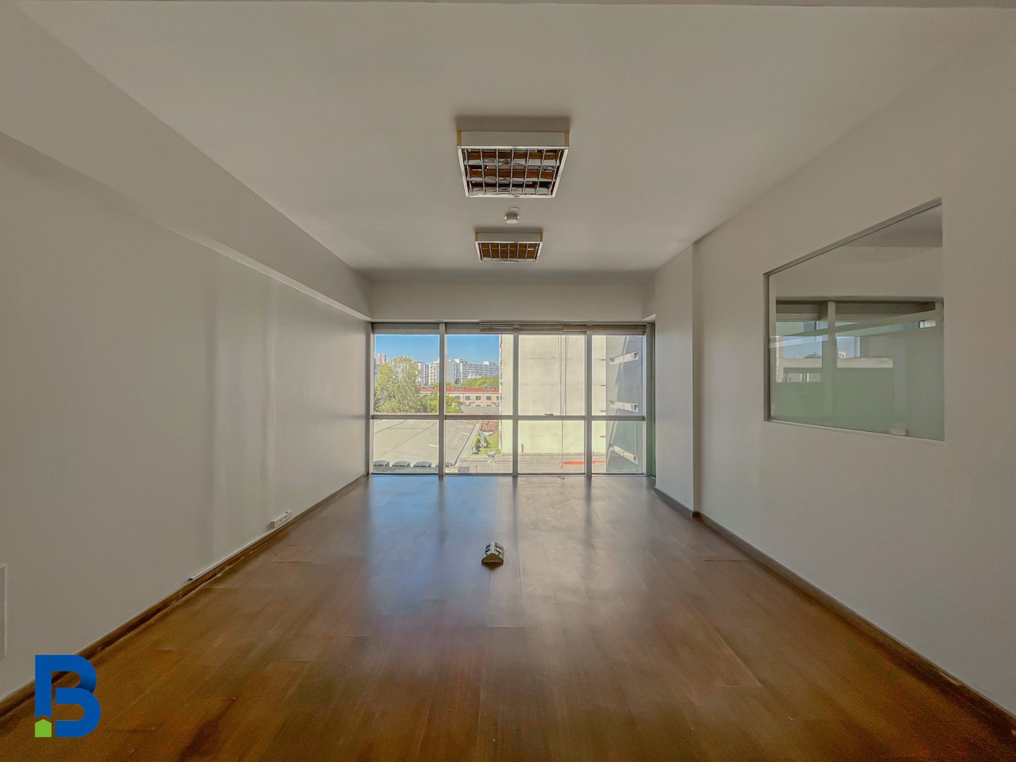 Moderno edificio con vigilancia. Dos ascensores, uno de ellos es tipo camillero. La oficina cuenta con amplios ambientes muy luminosos con vista a la avenida Juan de Garay y al contrafrente con vista a un abierto pulmón de manzana. Los pisos son de madera.
